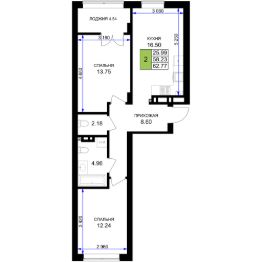 Двухкомнатная квартира — это продуманное пространство для комфортной жизни всей семьи. Две изолированные комнаты обеспечивают приватность и гибкость в зонировании: здесь легко разместить спальню, детскую, кабинет или гостиную — в зависимости от ваших потребностей. Просторная кухня вмещает полноценную обеденную зону и дополняется встроенной кладовой, где удобно хранить продукты, бытовую технику или кухонную утварь, сохраняя порядок в основной зоне. Лоджия добавляет функциональную площадь — для хранения, сушки белья или создания уютного уголка отдыха.