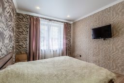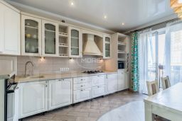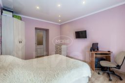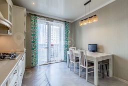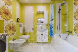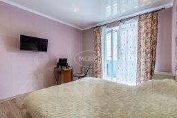 Квартира с евроремонтом, комнаты изолированы, есть балкон и лоджия. Два совмещённых санузла — удобно для семьи. Угловая планировка обеспечивает хорошее освещение и вентиляцию.