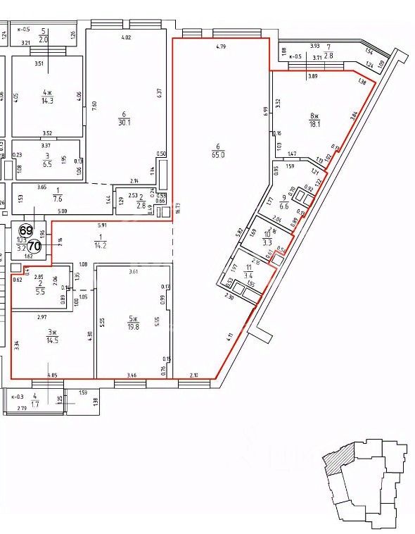 В квартире два помещения предусмотренные под гардеробную или хозяйственную комнату, два санузла.