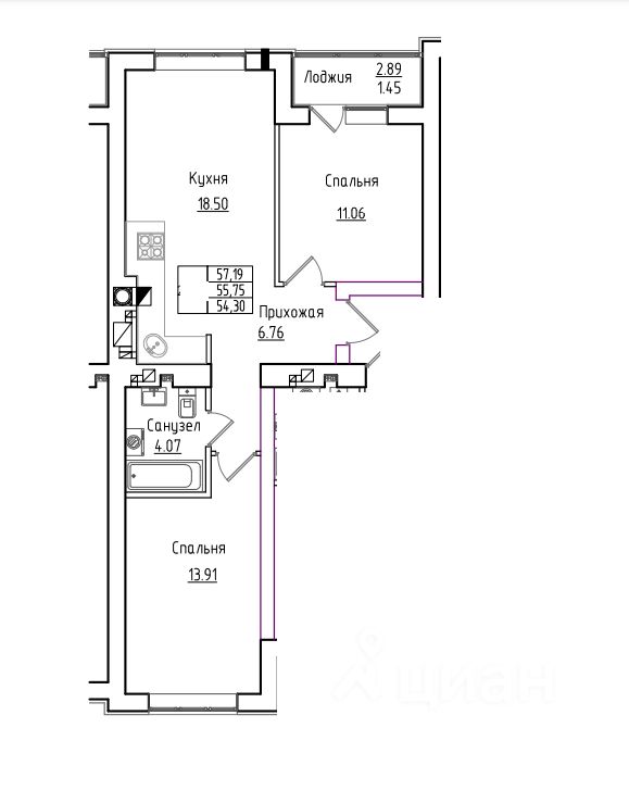 Продаётся 2-комнатная квартира в сданном доме (Дом 2), срок сдачи: IV-кв. 2024, общей площадью 57.19 кв.м., на 3 этаже. Новый жилой комплекс "11 Мая" от застройщика "ГК Модуль-Стройград" расположен по адресу: г. Калининград, улица Согласия.