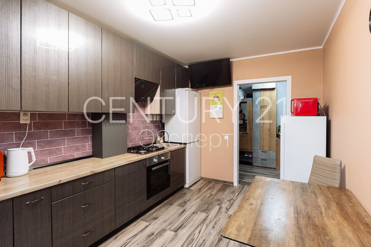 Кухня со встроенным гарнитуром и техникой остается новым хозяевам в подарок. Кстати, кухня занимает просторные 12 кв.м и имеет выход на застекленный балкон площадью 3.4 кв.м.