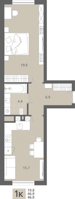 Продаётся 1-комнатная квартира в строящемся доме (Дом 1.2), срок сдачи: IV-кв. 2026, общей площадью 46.8 кв.м., на 1 этаже. Новый жилой комплекс "МОре" от Строительной компании "Меркурий" расположен по адресу: Калининградская область, г. Пионерский, пос. Рыбное.