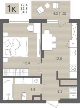 Продаётся 1-комнатная квартира в строящемся доме (Дом 1.2), срок сдачи: IV-кв. 2026, общей площадью 34.1 кв.м., на 4 этаже. Новый жилой комплекс "МОре" от Строительной компании "Меркурий" расположен по адресу: Калининградская область, г. Пионерский, пос. Рыбное.