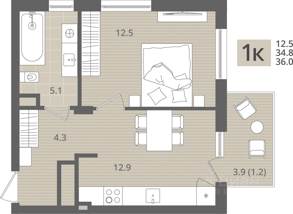 Продаётся 1-комнатная квартира в строящемся доме (Дом 1.1), срок сдачи: IV-кв. 2026, общей площадью 36 кв.м., на 6 этаже. Новый жилой комплекс "МОре" от Строительной компании "Меркурий" расположен по адресу: Калининградская область, г. Пионерский, пос. Рыбное.