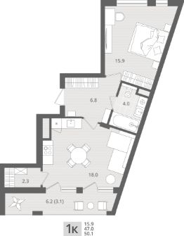 Продаётся 1-комнатная квартира в строящемся доме (Дом 1.1), срок сдачи: IV-кв. 2026, общей площадью 50.1 кв.м., на 2 этаже. Новый жилой комплекс "МОре" от Строительной компании "Меркурий" расположен по адресу: Калининградская область, г. Пионерский, пос. Рыбное.