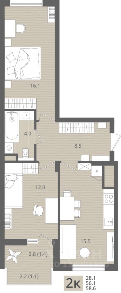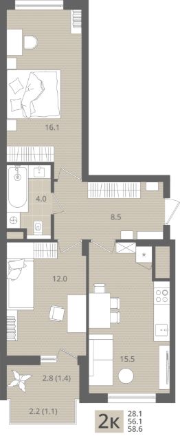 58,6 м²