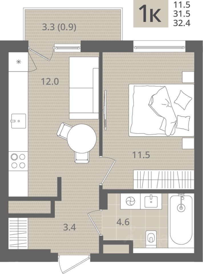 Продаётся 1-комнатная квартира в строящемся доме (Дом 1.1), срок сдачи: IV-кв. 2026, общей площадью 32.4 кв.м., на 5 этаже. Новый жилой комплекс "МОре" от Строительной компании "Меркурий" расположен по адресу: Калининградская область, г. Пионерский, пос. Рыбное.