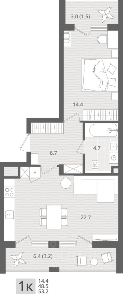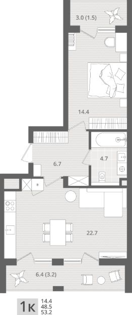 Продаётся 1-комнатная квартира в строящемся доме (Дом 1.1), срок сдачи: IV-кв. 2026, общей площадью 53.2 кв.м., на 1 этаже. Новый жилой комплекс "МОре" от Строительной компании "Меркурий" расположен по адресу: Калининградская область, г. Пионерский, пос. Рыбное.