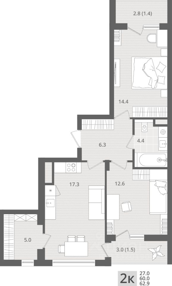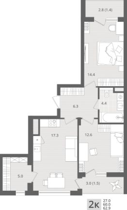 Продаётся 2-комнатная квартира в строящемся доме (Дом 1.1), срок сдачи: IV-кв. 2026, общей площадью 62.9 кв.м., на 4 этаже. Новый жилой комплекс "МОре" от Строительной компании "Меркурий" расположен по адресу: Калининградская область, г. Пионерский, пос. Рыбное.