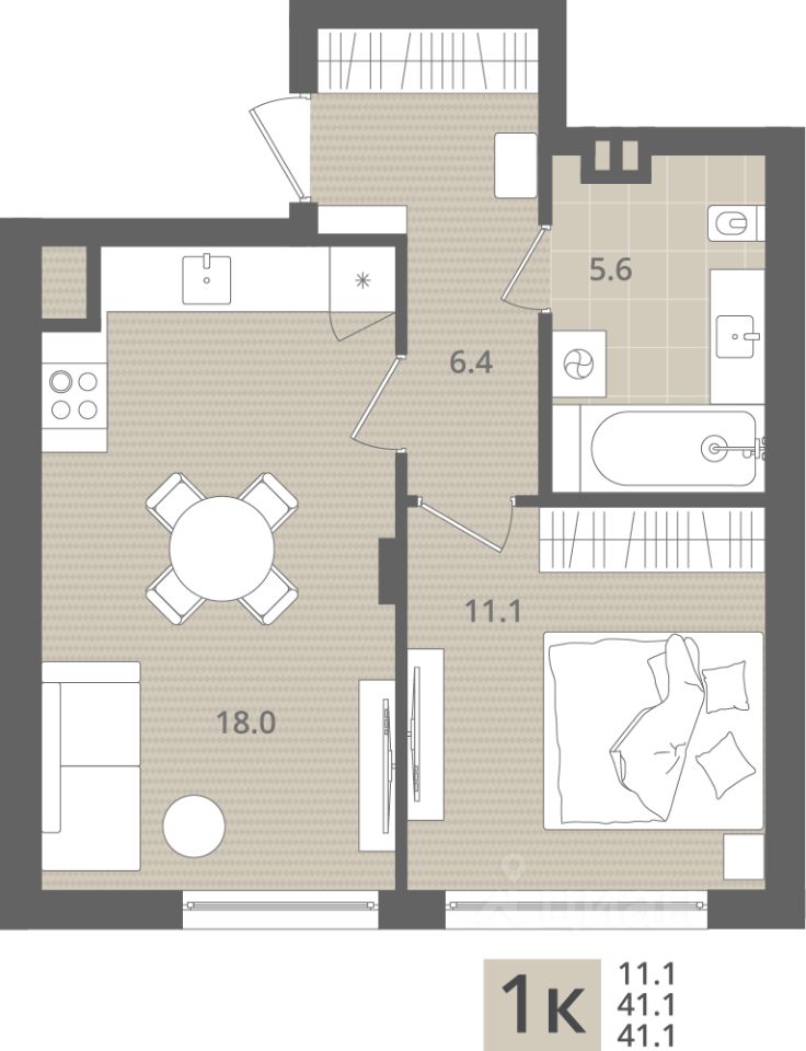 Продаётся 1-комнатная квартира в строящемся доме (Дом 1.1), срок сдачи: IV-кв. 2026, общей площадью 41.1 кв.м., на 1 этаже. Новый жилой комплекс "МОре" от Строительной компании "Меркурий" расположен по адресу: Калининградская область, г. Пионерский, пос. Рыбное.