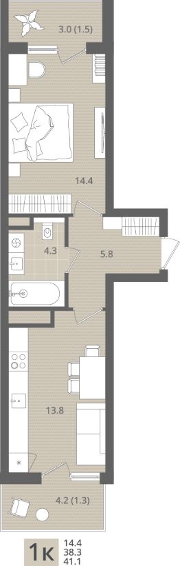 41,1 м²