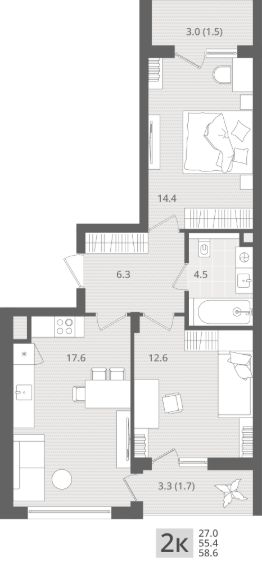 58,6 м²