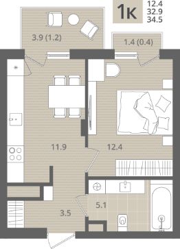 Продаётся 1-комнатная квартира в строящемся доме (Дом 1.1), срок сдачи: IV-кв. 2026, общей площадью 34.5 кв.м., на 7 этаже. Новый жилой комплекс "МОре" от Строительной компании "Меркурий" расположен по адресу: Калининградская область, г. Пионерский, пос. Рыбное.
