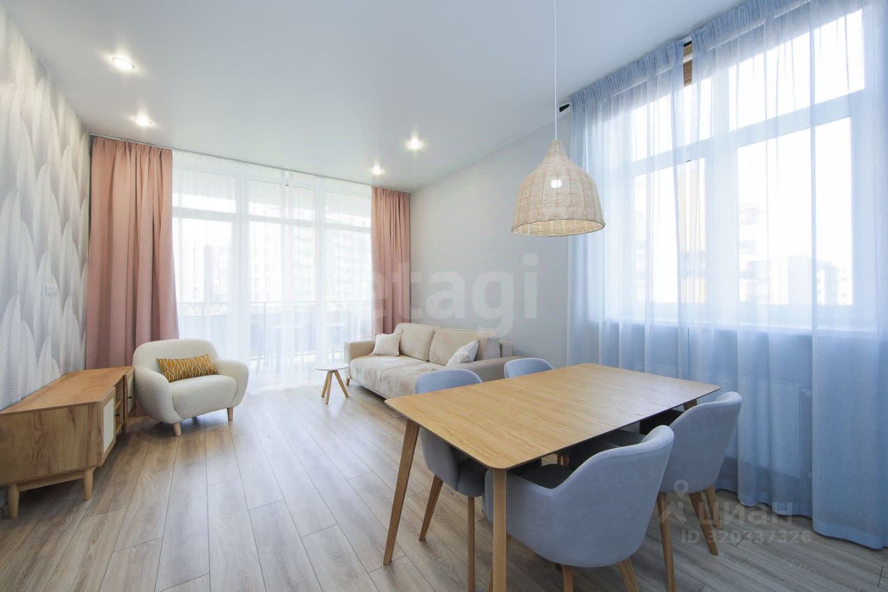 просторная, светлая кухня-гостиная с выходом на большой балкон ( 7.8 кв.м. ) с прекрасным видом, где вы сможете разместить даже шезлонги