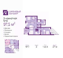 3-комн. квартира от застройщика с предчистовой отделкой в ЖК "Сиреневый бульвар" на 1 этаже. Общая площадь: 97.5 кв.м., жилая: 41 кв.м., площадь просторной кухни-столовой: 23.7 кв.м. Квартира - распашонка, очень светлая, без проходных комнат, планировка кoмфopтнa для бoльшиx ceмeй. В квартире два балкона, один совмещенный и один раздельный санузел. Терраса представляет собой роскошную зону отдыха, где вы на свой вкус можете создать атмосферу комфорта и уюта. Высота потолков 2.7 м.