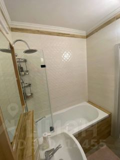 На полу в прихожей и на кухне плитка, в комнатах ламинат. Два санузла в кафеле, полы с подогревом.