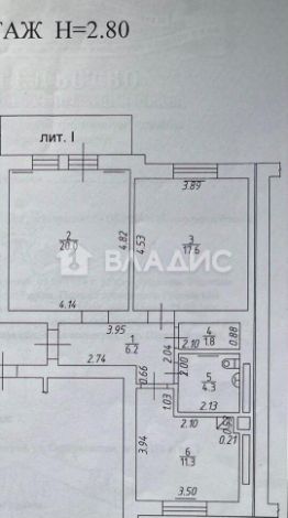 Высота потолков 2,8 м .