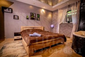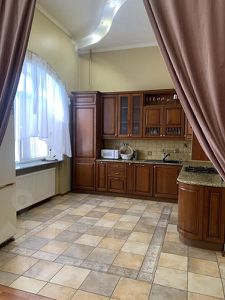 Интерьер квартиры выполнен по индивидуальному дизайнерскому проекту. В квартире шесть просторных комнат, которые подойдут как для большой семьи, так и для любителей уединения. Просторная кухня площадью 27 квадратных метров полностью оборудована современной техникой, включая холодильник и посудомоечную машину. В квартире есть вся необходимая мебель (натуральное дерево) как в комнатах, так и на кухне. Два совмещённых санузла оснащены ванной и душевой кабиной, а также стиральной машиной. Окна выходят как на улицу, так и во двор, что обеспечивает хорошую освещённость в любое время суток.