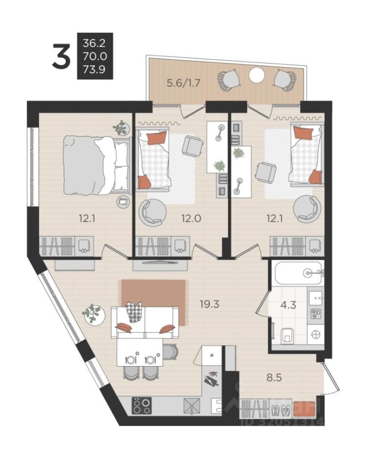 Продаётся 3-комнатная квартира 70 м2 в ЖК O2. Жилой комплекс комфорт-класса расположен в экологически чистом месте Гурьевского района, в 15 минутах от центра Калининграда, где раскрываются все преимущества загородной жизни - чистый воздух, тишина и добрососедские отношения.