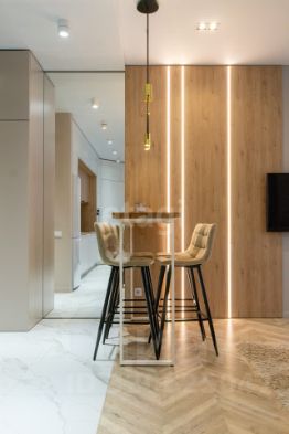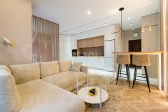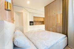 - Полностью укомплектована всем необходимым для комфортного проживания, включая кондиционер и теплые полы по всей квартире (в ванной комнате — электрические).