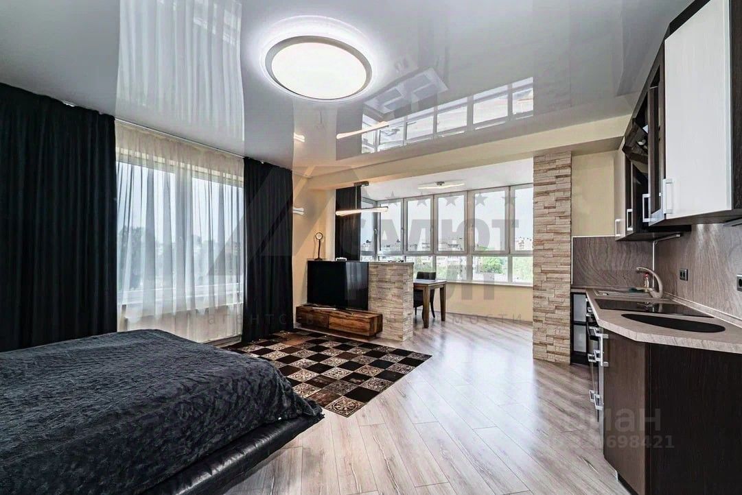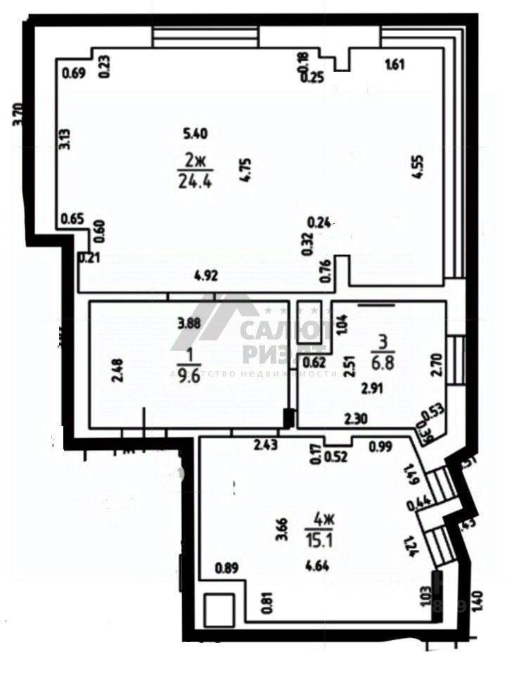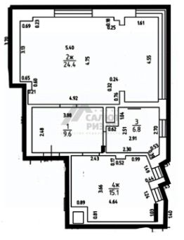 Большая кухня-гостиная (24.4 м2) и спальня (15.1 м2).