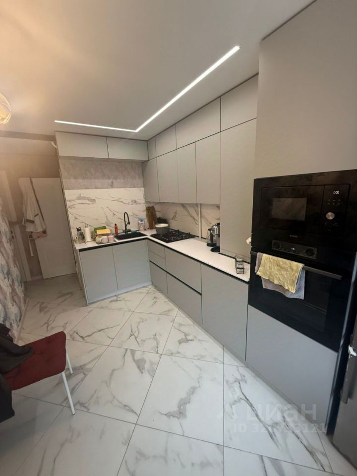 Остается встроенная кухня с техникой .