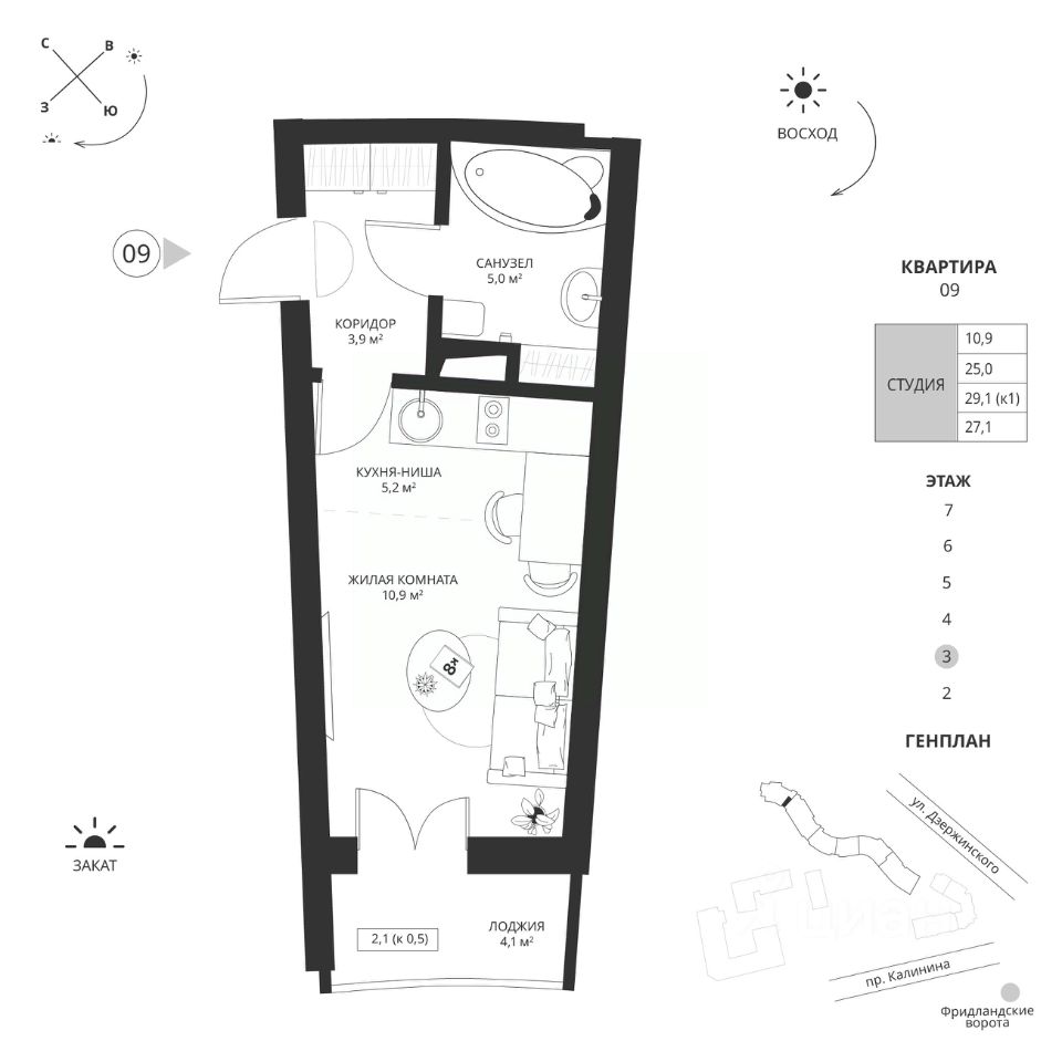 Общая площадь27,1 м²