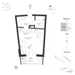 Жилая площадь17,5 м²