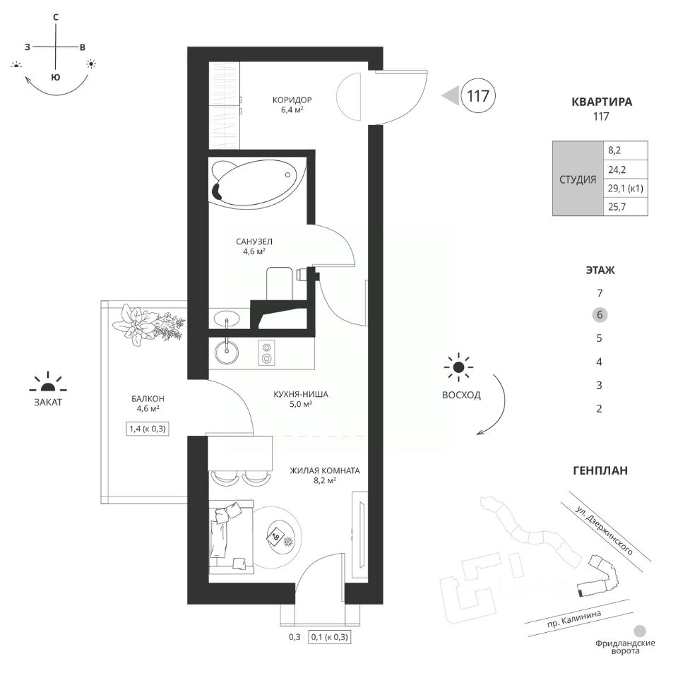 Общая площадь25,7 м²