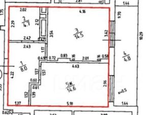 Параметры: терраса 9.5 КВ.м, кухня 14.5 КВ.м, спальня 14.6 КВ.м, коридор с гардеробной 8 КВ.м, сан.узел 4.7 КВ.м.