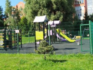 Парковка во дворе. Дом находится в тихом дворе, вдали от шума машин. Во дворе детская и спортивная площадки.