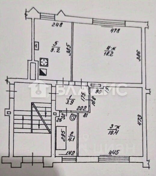 Квартира расположена на высоком первом этаже четырёхэтажного дома и имеет общую площадь 54,8 кв. м, изолированные комнаты с окнами на разные стороны площадью 19,4 и 18,2 кв. м, кухня 9,2 кв.м, большой совмещенный санузел с окном. Высокие потолки 2,8 м. Автономное отопление. Из окон открывается живописный вид на озелененный двор.