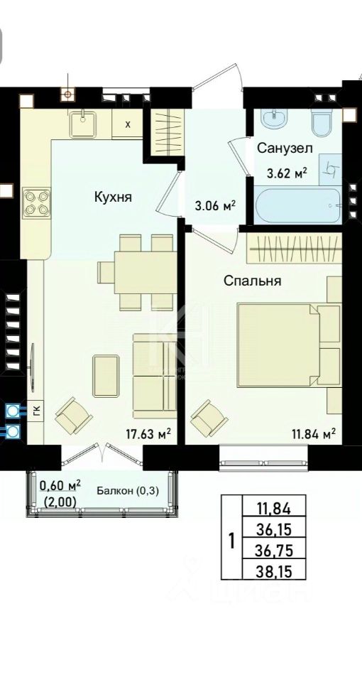 Квартира N 25, дом 1 Старт продаж квартир от Застройщика! ДОМ СДАН!