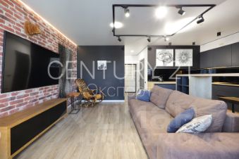 Интерьер выполнен в современном стиле лофт или индастриал с элементами минимализма. Квартира полностью готова к заселению — не нужно думать о ремонте!