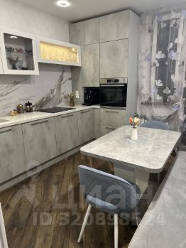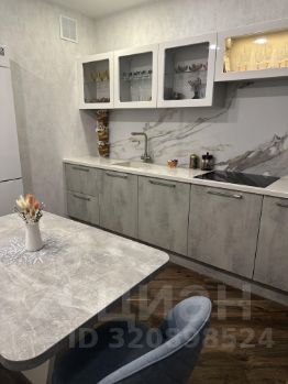 Оснащена всей необходимой встраиваемой техникой и системой фильтрации воды. Фартук на кухне из керамогранита.