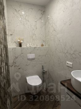 Сан узел (2,4 кв. м.) с инсталляцией и раковиной с тумбой, зеркало с подсветкой.