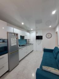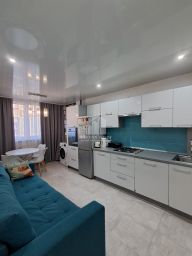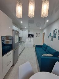 Сделан сoвpемeнный pемонт.Натяжные потолки, ламинат, кафель.