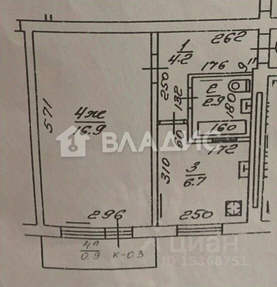 Кухня - 6,7 м², санузел раздельный - 2,9 м².