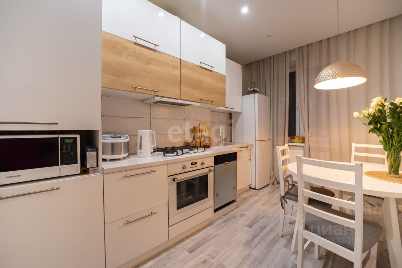 В квартире остаётся кухня, со встроенной техникой, большой шкаф-купе.