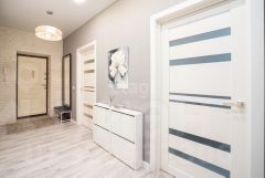 В квартире сделан современный ремонт в светлых бело-серых тонах из качественный материалов.