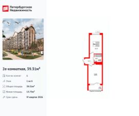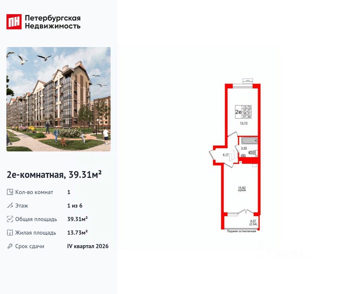 Удобная, классическая, функциональная европланировка, большая кухня-гостиная 15.82 м², вместительная прихожая 4.17 м². Общая площадь квартиры - 39.31 м², жилая 13.73 м², высота потолка 3 м.