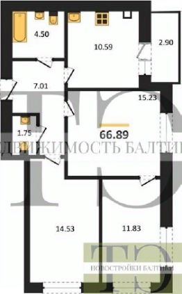 Квартира: 3 к 66,89 кв.м., 8 этаж в комплексе Подсолнухи, 4 очередь, корп.6, сдача: 4кв. , этажей: 9, адрес Калининград г., Крейсерская ул., , Застройщик: Модуль-Стройград.