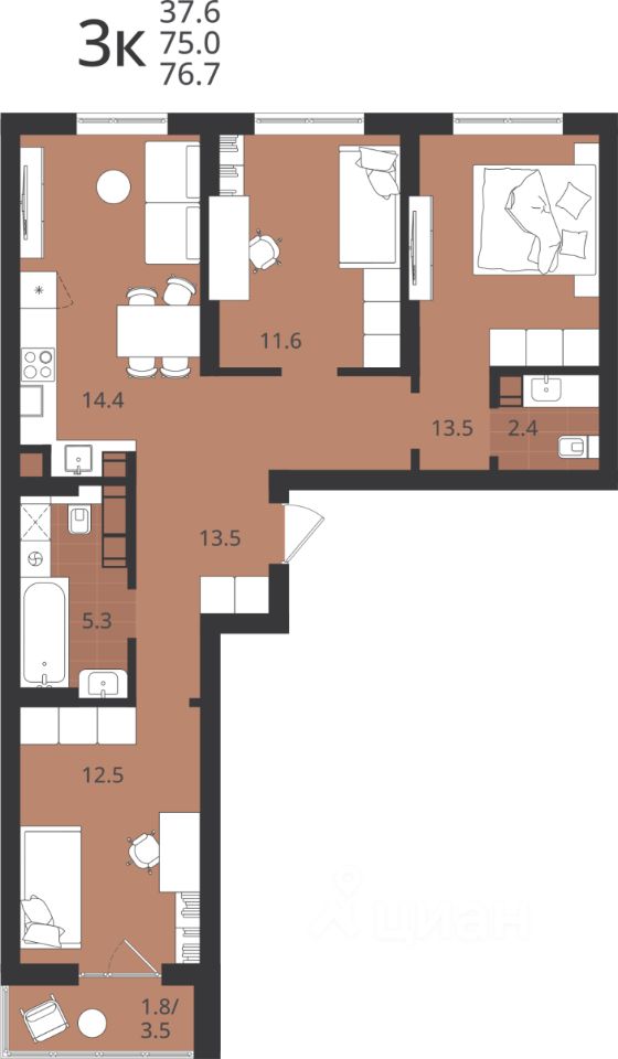 Квартира 87. Откройте новую главу своей жизни в жилом комплексе "Луччи" — в шаге от Верхнего озера и динамичного центра Калининграда! Современный комфорт, природа и городские возможности встречаются здесь.