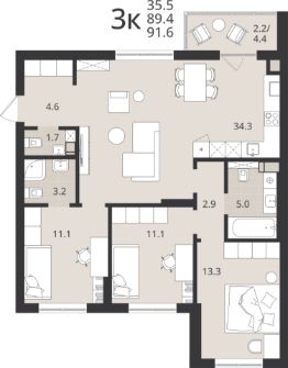 Большой выбор квартир: от студий до 3-комнатных, с разными вариантами планировок и балконов