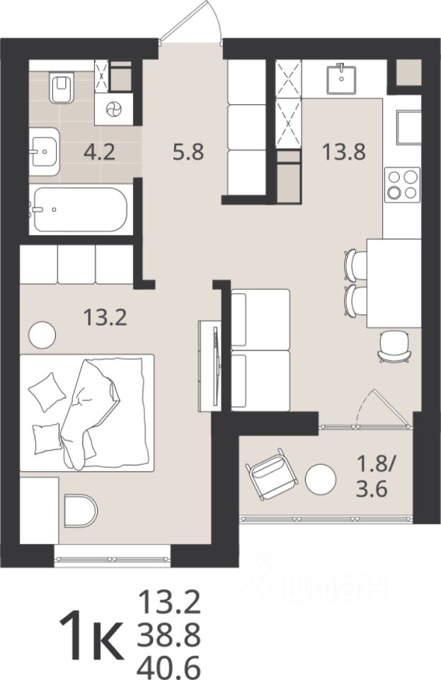 Большой выбор квартир: от студий до 3-комнатных, с разными вариантами планировок и балконов