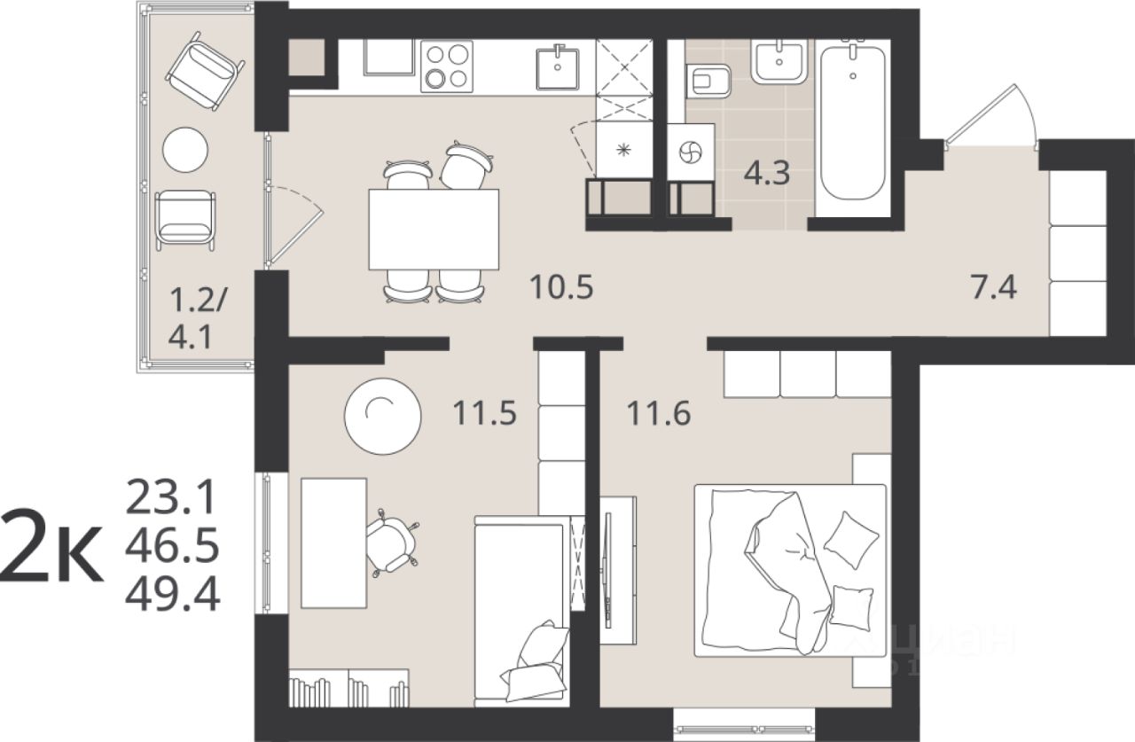 Большой выбор квартир: от студий до 3-комнатных, с разными вариантами планировок и балконов