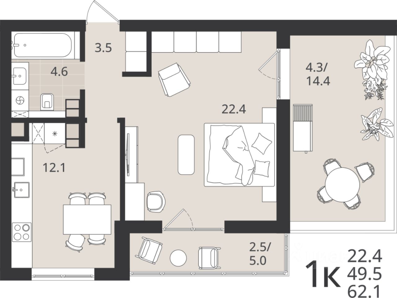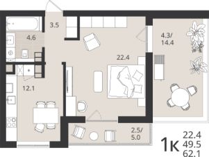 Большой выбор квартир: от студий до 3-комнатных, с разными вариантами планировок и балконов
