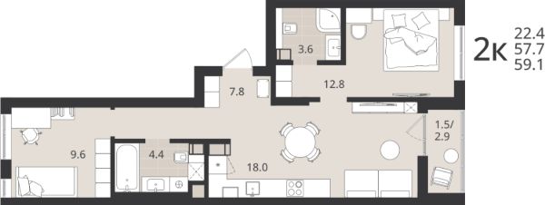 Большой выбор квартир: от студий до 3-комнатных, с разными вариантами планировок и балконов