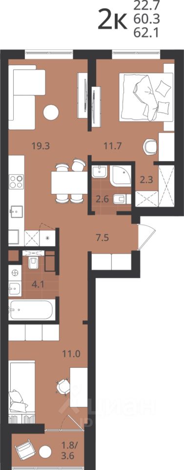 Большой выбор квартир: от студий до 3-комнатных, с разными вариантами планировок и балконов