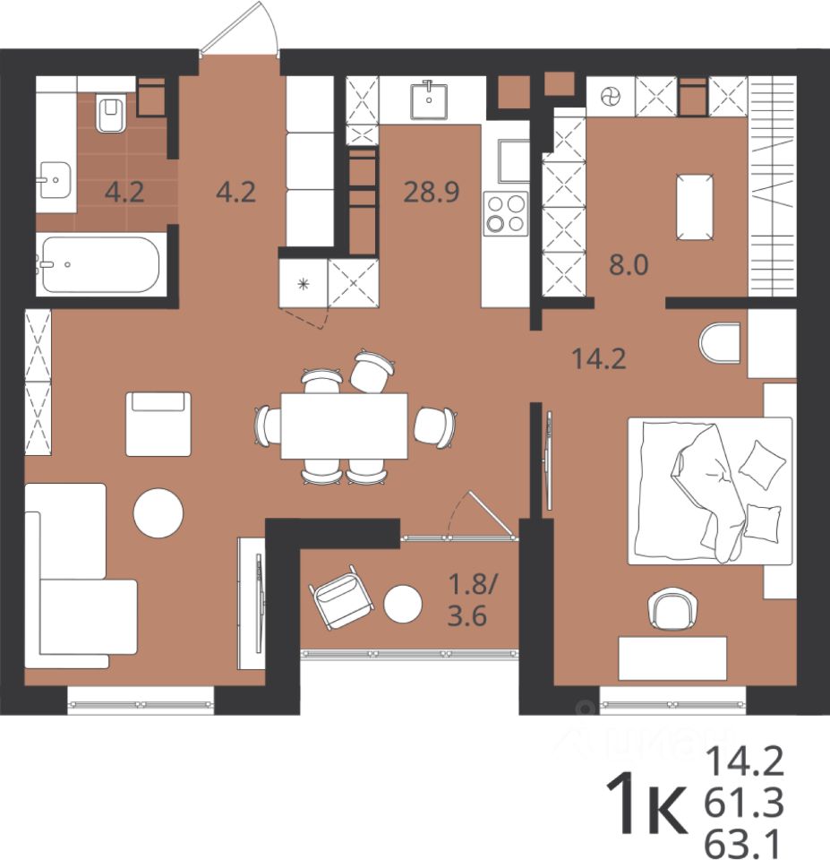 Большой выбор квартир: от студий до 3-комнатных, с разными вариантами планировок и балконов